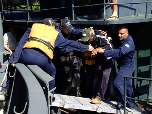 Após o pedido de auxílio, todos os civis foram transladados para o navio; e militares, especializados em motores, sanaram a avaria, reestabelecendo as condições mínimas de navegabilidade. Todos os civis desembarcaram em segurança, nas proximidades da Ponte Rodoviária, local combinado previamente para o desembarque.