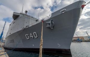 O navio Multipropósito NDM Bahia já porta a matricula (G 40) e o pavilhão brasileiro